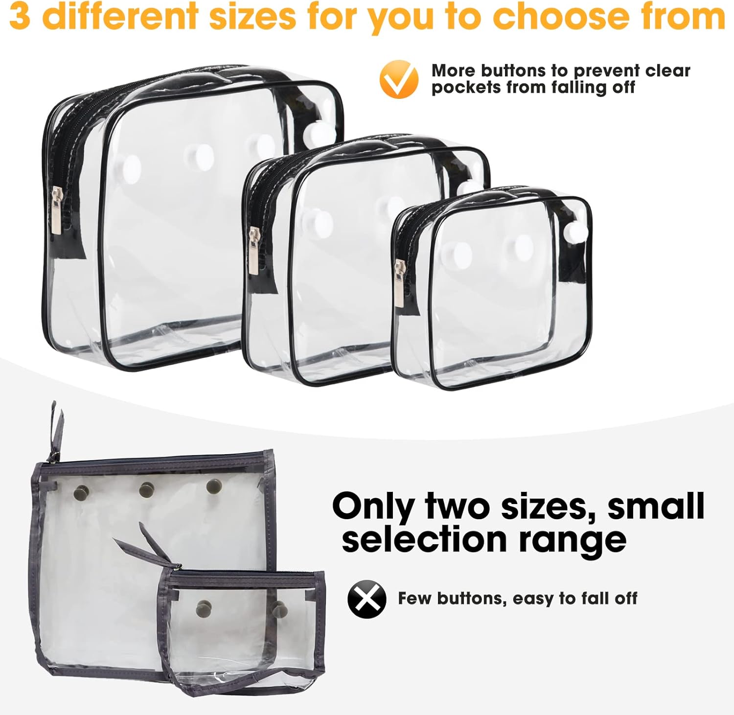 【MULTIPLE SIZES】: Our clear travel bags are available in large, medium and small sizes. It has enough space to store your items and meet your storage needs for different items.