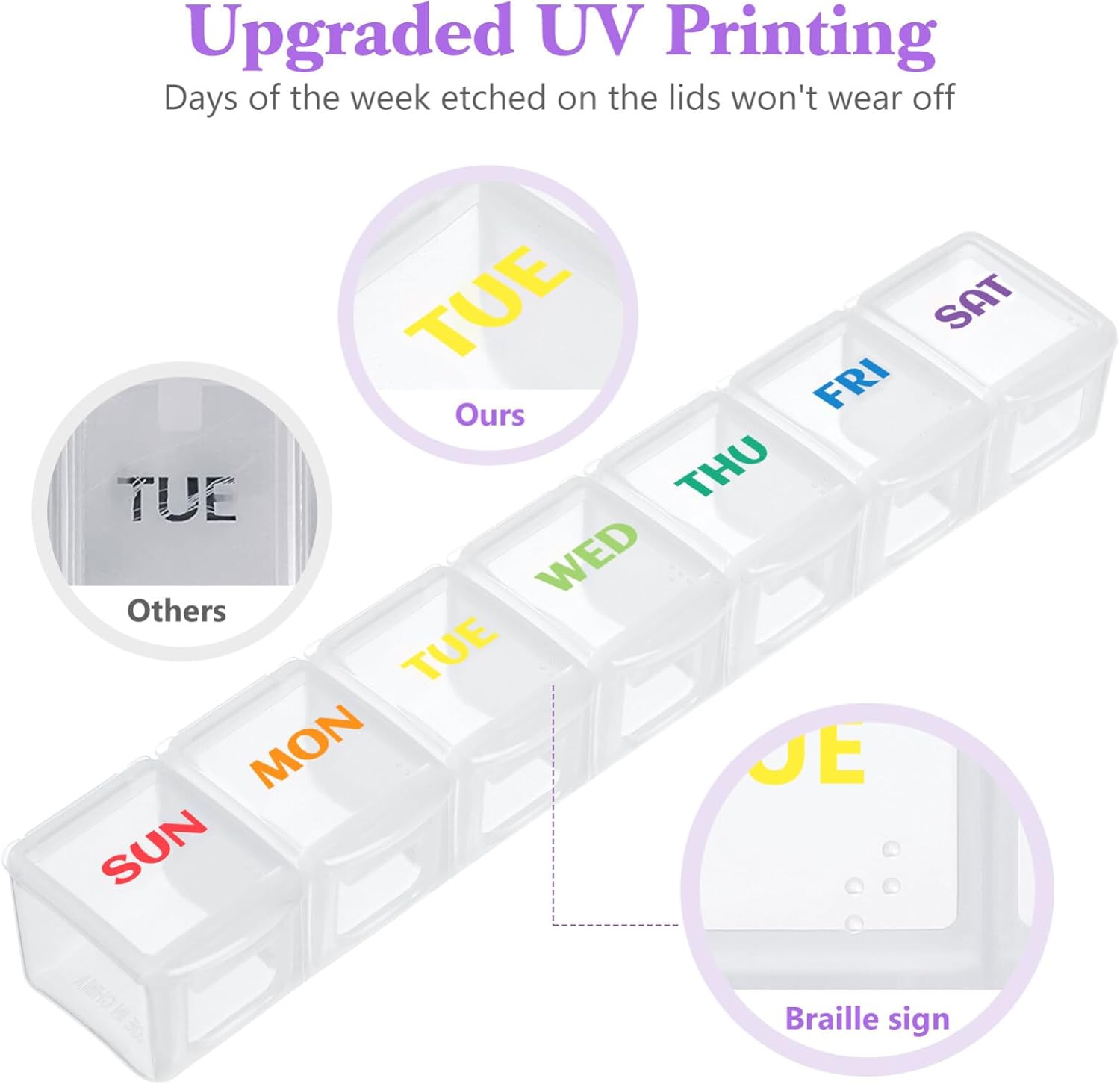 – Labeled with dates: Each compartment is labeled with the days of the week, making it easy to track your medication schedule and avoid confusion.