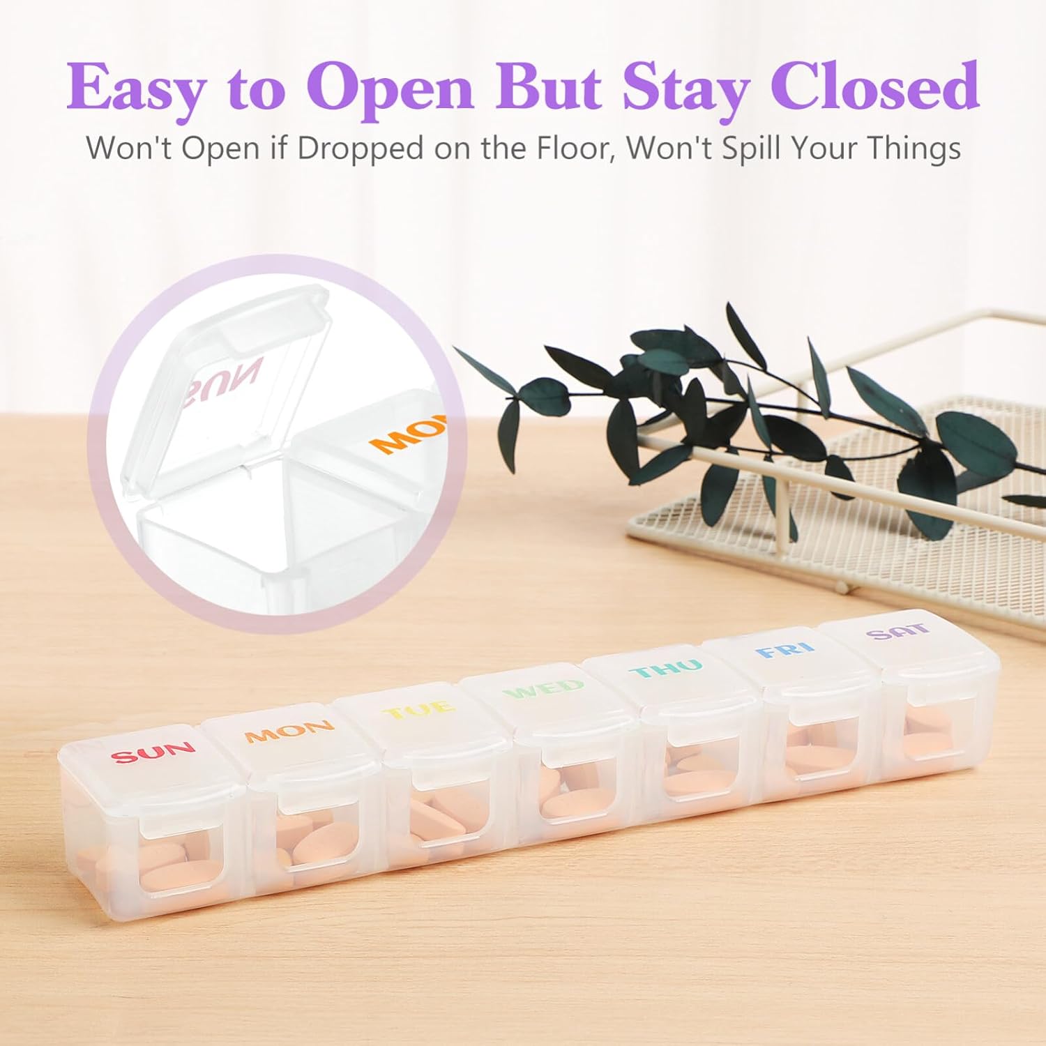 Each Compartment Opens and Closes Individually, Making It Easy to Remove Only The Needed. Weekly Organizer, Plastic 7 Day Medicine Tablet Dispenser Container Storage Case Planner Storage for Home Drugstore Travel Office
