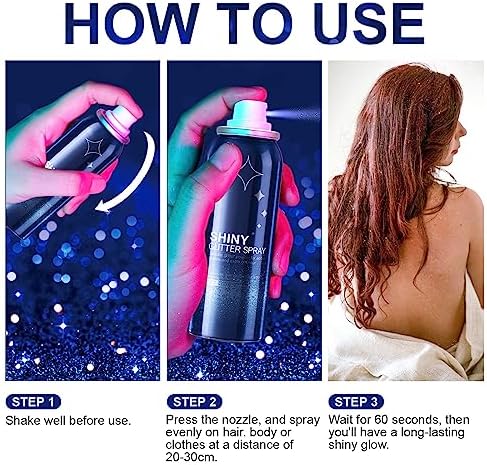 [Long-Lasting Hold] Holographic Glitter Spray is superior long lasting and quick-dry, and it suitable for most skin types. Simply spray a small amount of glitter on your body, hair or clothing to create a shimmering effect.