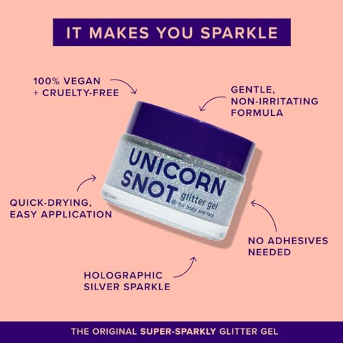 NO HARMFUL CHEMICALS: Unlike other glitter gel bases which can contain unhealthy chemicals that absorb into your skin, Unicorn Snot Glitter Gel is made with cosmetic-grade glitter, so it’s safe for your skin and safe for your kids. It dries quickly, lasts all day, and removes easily.