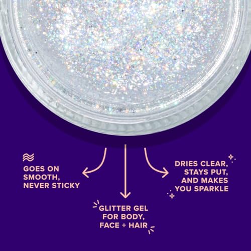 COSMETIC-GRADE GLITTER: Fun and bright glitter gel made in multiple shades of color. This body glitter can be used on the eyes, face, body, or wherever you like! It has cosmetic-grade glitter and is safe for use on the face or skin. Available in 1.7 fl oz/ 45ml jars of Holographic Glitter Gel.