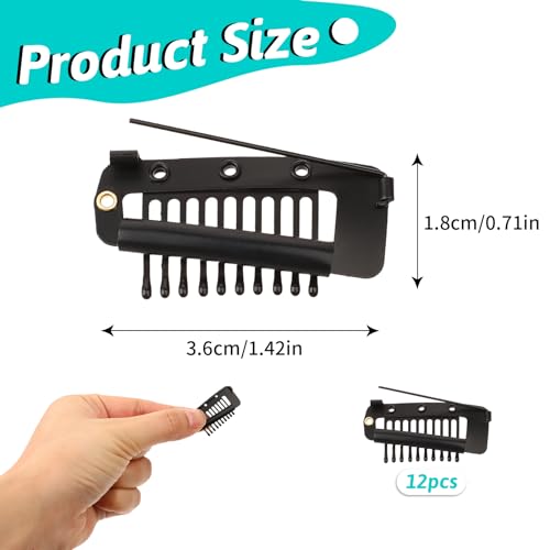 12Pcs 36mm 10-teeth Wig Clip, Metal Hair Extension Clips Snap Wig Clips Seamless Invisible Strong Wig Combs for Girls Women Wigs Hairpiece Headscarf Hair Extensions Accessories(Black)