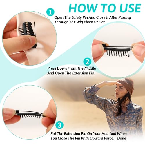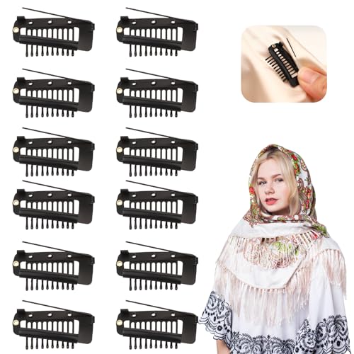 【Package Contents】: You will receive 12 mix color wig clips (black x 3, brown x 3, gold x 3, silver x 3)/12pcs black wig clips, each clip comes with a safety pin to easily secure your wig or headscarf. Sufficient quantity to meet your needs.