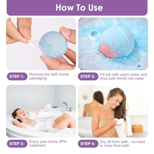 Charming Fragrance: The bath bombs are rich in essential oils to moisturize and maintain skin elasticity. The nutrient-rich sea salt softens the skin and improves dull complexion. Shea butter has powerful purifying and moisturizing effects. The rich floral and fruity scent allows you to relax and enjoy your bathing experience completely.