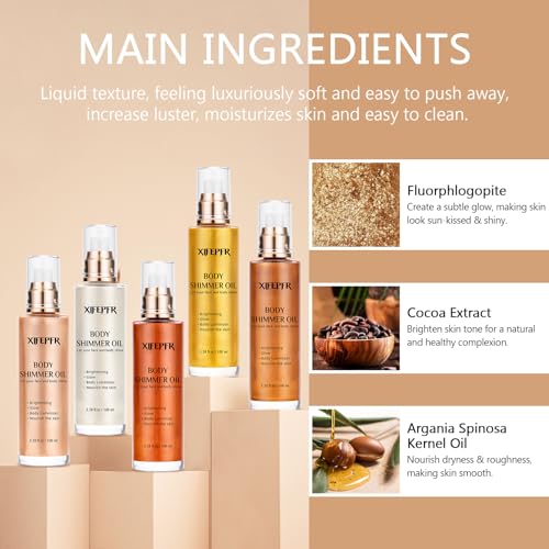 Premium Formula: Made with a variety of natural ingredients, this liquid body shimmer is long-lasting hydration, effectively locking in moisture and nourishing the skin. The texture is light, easy to push away, non-sticky and non-cakey. It keeps skin glowing without clogging pores.