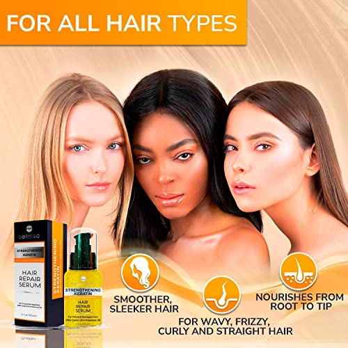 TAMES FRIZZ: This keratin hair serum treatment from Bellisso is the advanced hair care you need when you’re looking to reduce frizzy, flyaways and unruly hair; Our hair styling products contain an advanced blend of keratin and argan oil for hair that can help detangle, smooth and strengthen your locks, helping you put your best face forward