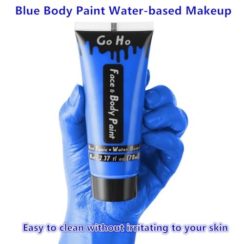 【Water Based Cream Royal Blue Face Body Paint】Soft and moderate consistence royal blue face body paint.Not too thick or too runny.Good coverage.Go on smoothly.Easy to blend.Easy on and off.No cracks and flakes.No fading.No splotchy and patchy.No stains.Great for Professional Halloween Cospaly Smurf Mystique Avatar Clown and Harley Quinn Makeup Face Body Paint.