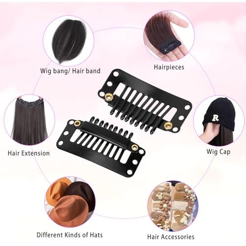 Featured Design: Wig clips for hair extensions with rubber features 9-tooth U-shaped design, 9 holes allow you to more easily attach or sew wigs or hair pieces with this snap clip, hair extension clips with strong and gripping silicone rod , good grip, specially designed for hair extensions and wigs, and the overall effect is more natural.