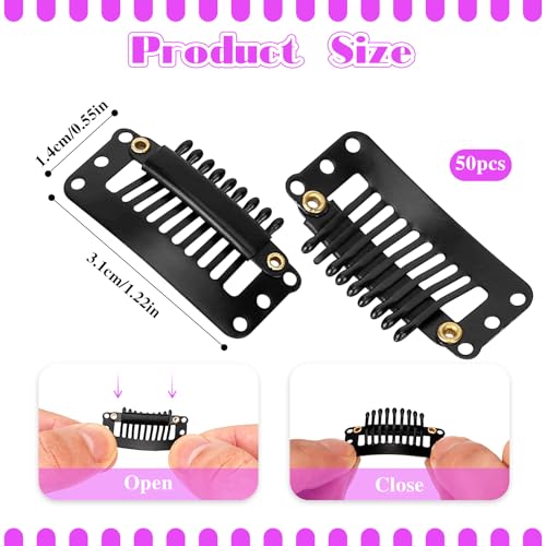 You will get: 50pcs 32 mm 9-teeth hair extension clips, the size is approximately: 3.2×1.7cm/1.26×0.67inch, the quantity is enough to meet your daily use, to firmly stabilize the wig and meet daily replacement needs.