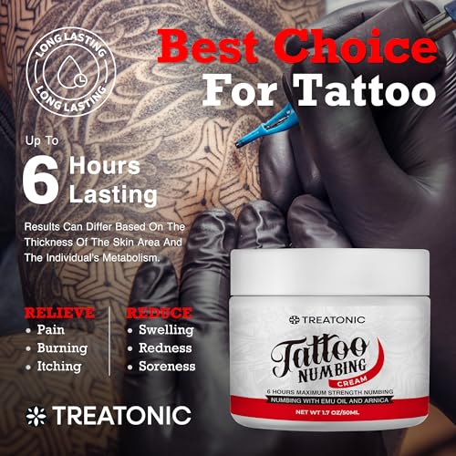 ✅Numbing Effect Lasts Up to 6 Hours: Our tattoo numbing cream before tattoo is specially formulated to provide up to 6 hours of pain relief, itching, soreness, and burning while reducing tattoo swelling. With our cream, you can complete your tattoo session in one step, without the need to pause or slow down. it is numbing cream for tattoos extra strength.