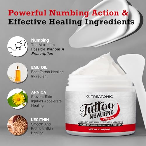 ✅Effective Healing Properties: Enriched with powerful ingredients like Arnica and Emu Oil, our tattoo numbing cream extra strength accelerates the healing process. The cream penetrates the skin, soothing, moisturizing, and promoting skin healing, resulting in less scabbing and a more vibrant, beautiful tattoo. Our numbing cream for tattoos extra strength is best tattoo numbing cream!