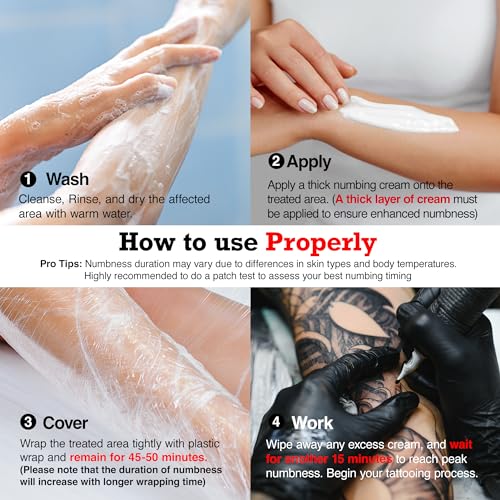 ✅Safe for All Skin Types: Our tattoo numbing cream before tattoo is easy to apply, non-greasy, and leaves no residue. It’s vegan-friendly, cruelty-free, and free from harsh chemicals. And It is recommended to choose a small area of skin for patch testing before use to prevent discomfort. Our Painless Tattoo Numbing Cream is numbing cream for tattoos extra strength
