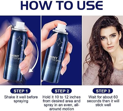 【Easy to use】Shake well before use, press the nozzle and spray hair, body, or clothes at a distance of 20-30 cm. Wait for 60 seconds, the fine mist glitter powder will be automatically adsorbed on the surface, and then you will have a long-lasting sparkling glow. It’s the perfect size to fit in your bag and can be carried around for a perfect makeup look.
