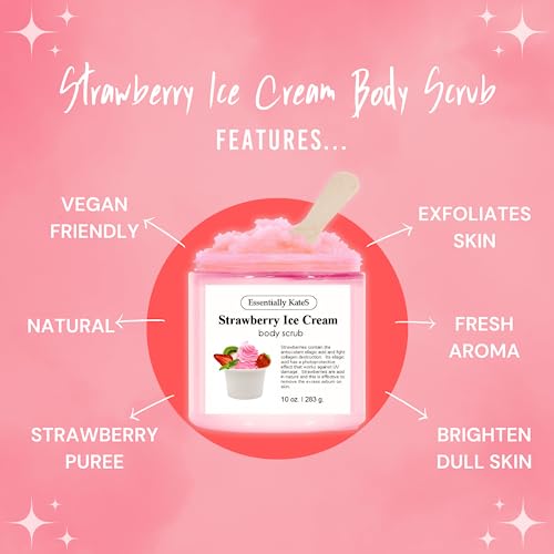 Saves time: No need for lengthy spa appointments. With the Essentially KateS Strawberry Ice Cream Body Scrub, achieve spa-like results in the comfort of your home.Easy to use: The products are easy to apply and remove, making your skincare routine a breeze.