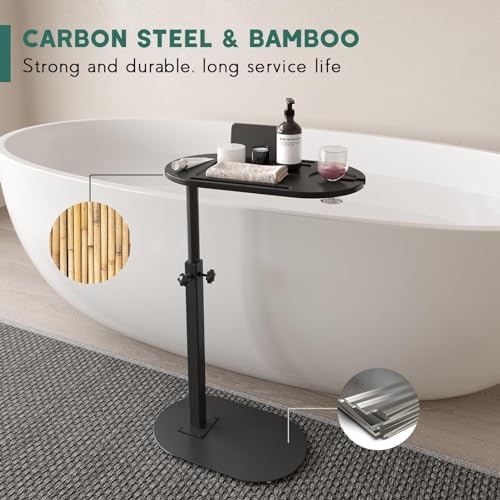 【No Longer Top Heavy】This bath table features a weighted carbon steel base, offering superior stability and support compared to other table trays with a pure bamboo base. The top tray is made of sturdy bamboo, eliminating any concerns of top-heaviness. It is also water-resistant, long-lasting, and easy to clean