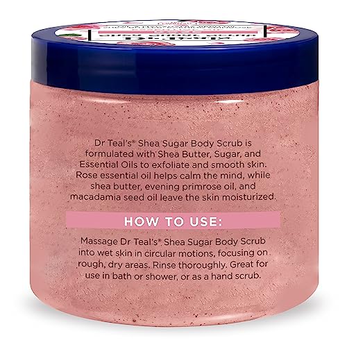 Experience the soothing skin treatment you deserve when you use Dr Teal’s Rose Shea Sugar Body Scrub with Essential Oils. Shea butter, evening primrose oil, and macadamia seed oil come together to deeply moisturize your skin while simultaneously exfoliating the skin. The fresh and calming rose petal scent will help to calm your mind and skin with every use. Elevate your skincare routine and your every day with this body scrub. Dr Teal’s Shea Sugar Body Scrubs are paraben-free, phthalate-free, cruelty-free, and vegan.
