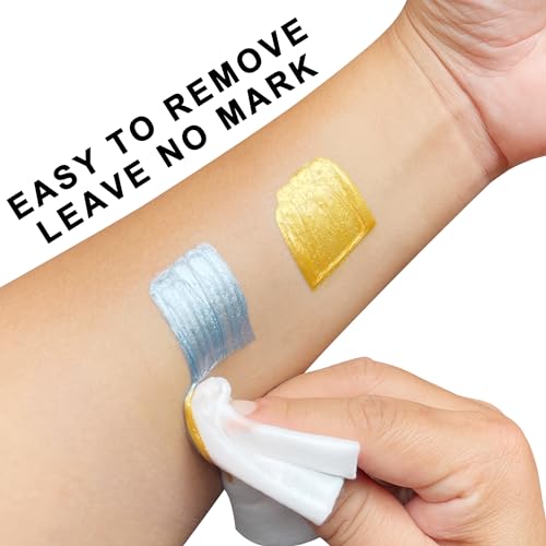 SAFE INGREDIENTS — Our face body paint is infused with gentle and safe formula,won’t itch,not irritating to skin,gentle face paint for sensitive skin,also safe for kids.Notice:As with all cosmetics we advise that a small skin patch test is done before applying as everyone’s skin is different