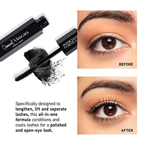 Diamond Mascara: Your lashes shine like literal diamonds with this lash boosting Diamond Mascara. This one step black mascara lengthens, lifts, and separates lashes. Blended with Lustrous Diamond Dust, strengthening Peptides, Mineral Water, and Vitamin E.