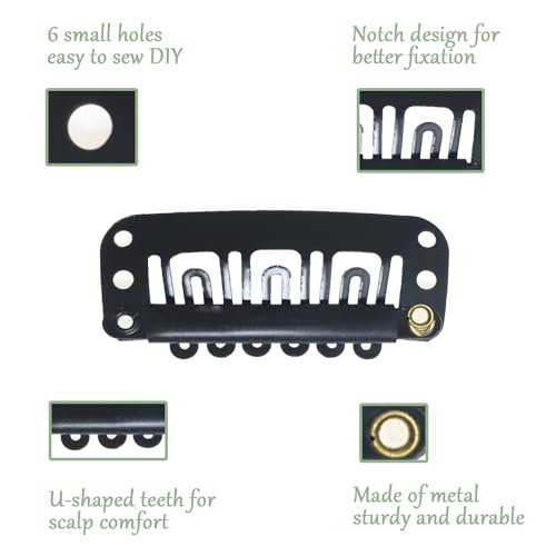 CLIP TYPE: U-shaped 6 holes, clips size is 1.5cm*3cm, 6 teeth in total, designed for hair extensions and wigs, with small holes for fixing or sewing wigs.