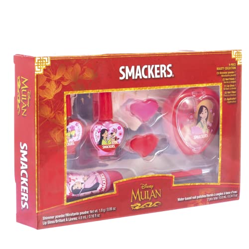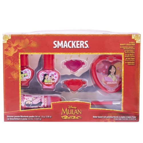 Have a beauty blast with this Disney beauty collection. The 9-piece collection comes in a convenient vault to take anywhere you go. It contains 3 shimmer powders, 2 nail polishes, 1 lip gloss, 1 applicator, and 2 hair clips. Perfect for a magical makeover from head to toe!