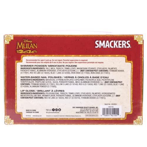 Includes: 3 shimmer powders, 2 nail polishes, 1 lip gloss, 1 applicator, and 2 hair clips.