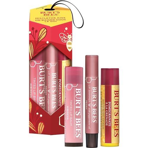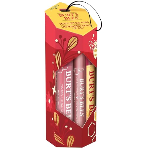 THE PACKAGE CONTAINS: One package of Burt’s Bees Lip Balms Mistletoe Kiss Gift Set with Lip Shimmer contains three tubes of balm and shimmer with holiday-themed packaging for your holiday gift baskets