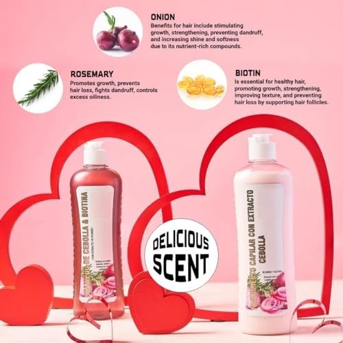 4. Promotes hair growth: Onion and rosemary stimulate blood circulation and provide hair follicles with the nutrients needed for faster, stronger and healthier hair growth. Biotin brings additional benefits to hair, improving its health and giving it shine and softness.