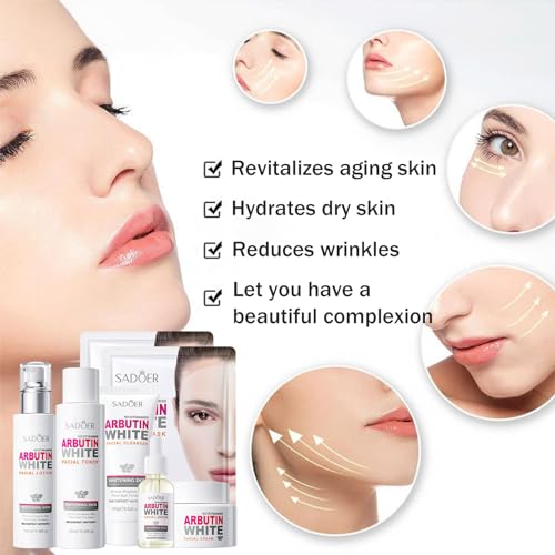 【Skincare Gift Set】The 7-piece gift for women contain our facial cleanser,serum,toner,lotion,cream,mask. Birthday gifts for women With the gentle effect of arbutin, even skin tone skin, make skin smooth, moisturize and elastic, helping to tackle the 5 early signs of dehydrated skin: dryness, dullness, dry dehydration lines, tightness, and roughness. Formulated to gently unclog pore and soothe redness while teenage girls gifts also protecting the skin from sun damage.