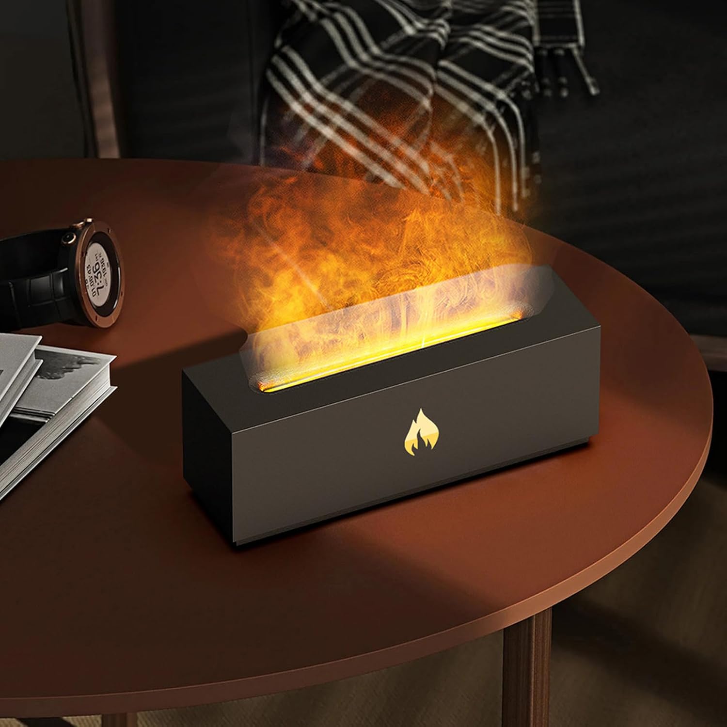 UNIQUE DESIGN: This simulated flame aromatherapy diffuser takes the appearance of a 3D three-dimensional fireplace, realistically simulates the effect of colorful flames, injecting a warm atmosphere into your room, unique.
