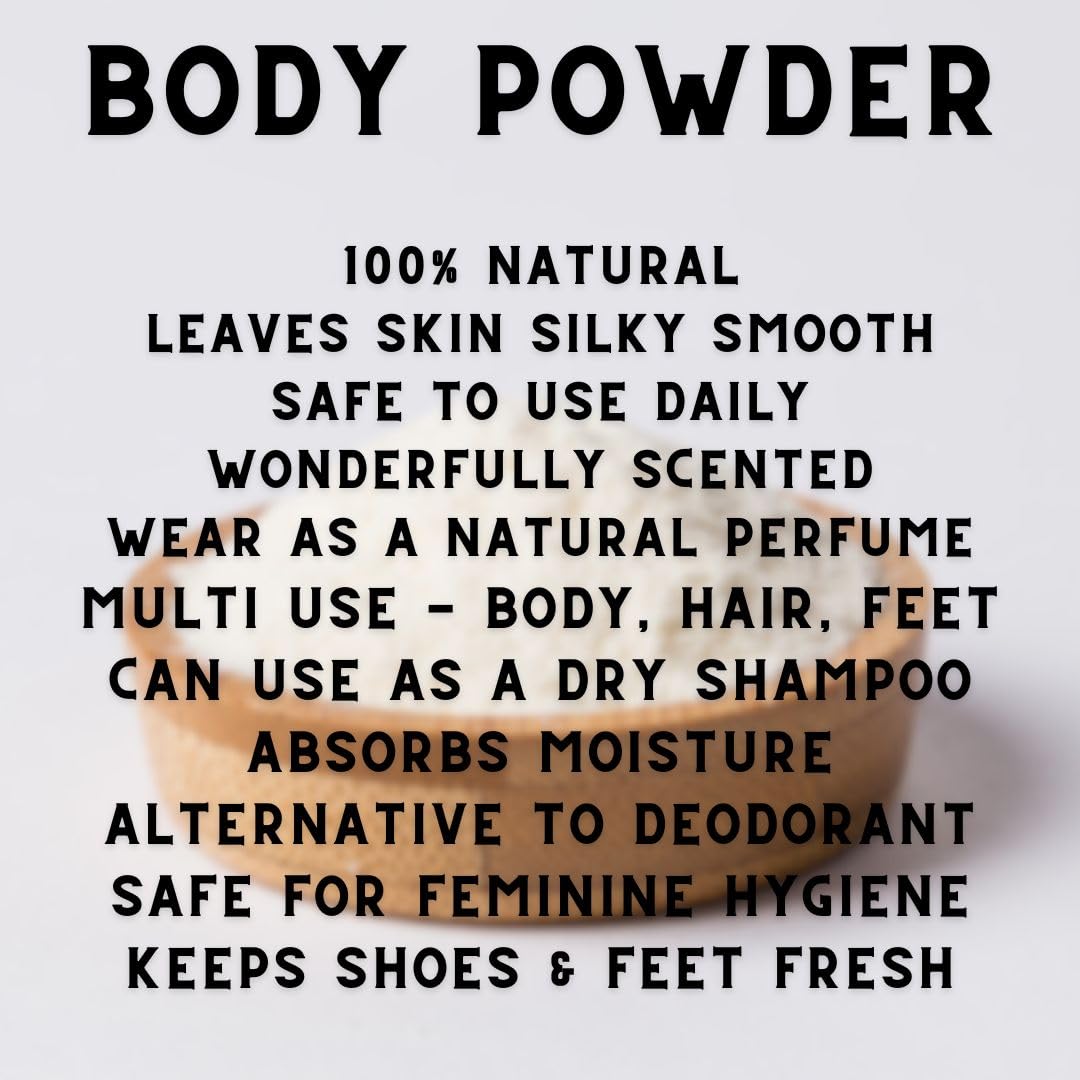 This is an all-purpose, talc-free, 100% natural body powder for men and women – it is scented blue sage & sandalwood. The powder is finely milled, making it easy to apply and smooth over the skin. It is ideal for use on the body, face, feet, and hair, and can help to absorb excess oil, reduce shine, and provide a matte finish. The powder is hypoallergenic and free of talc, making it suitable for people with sensitive skin.
