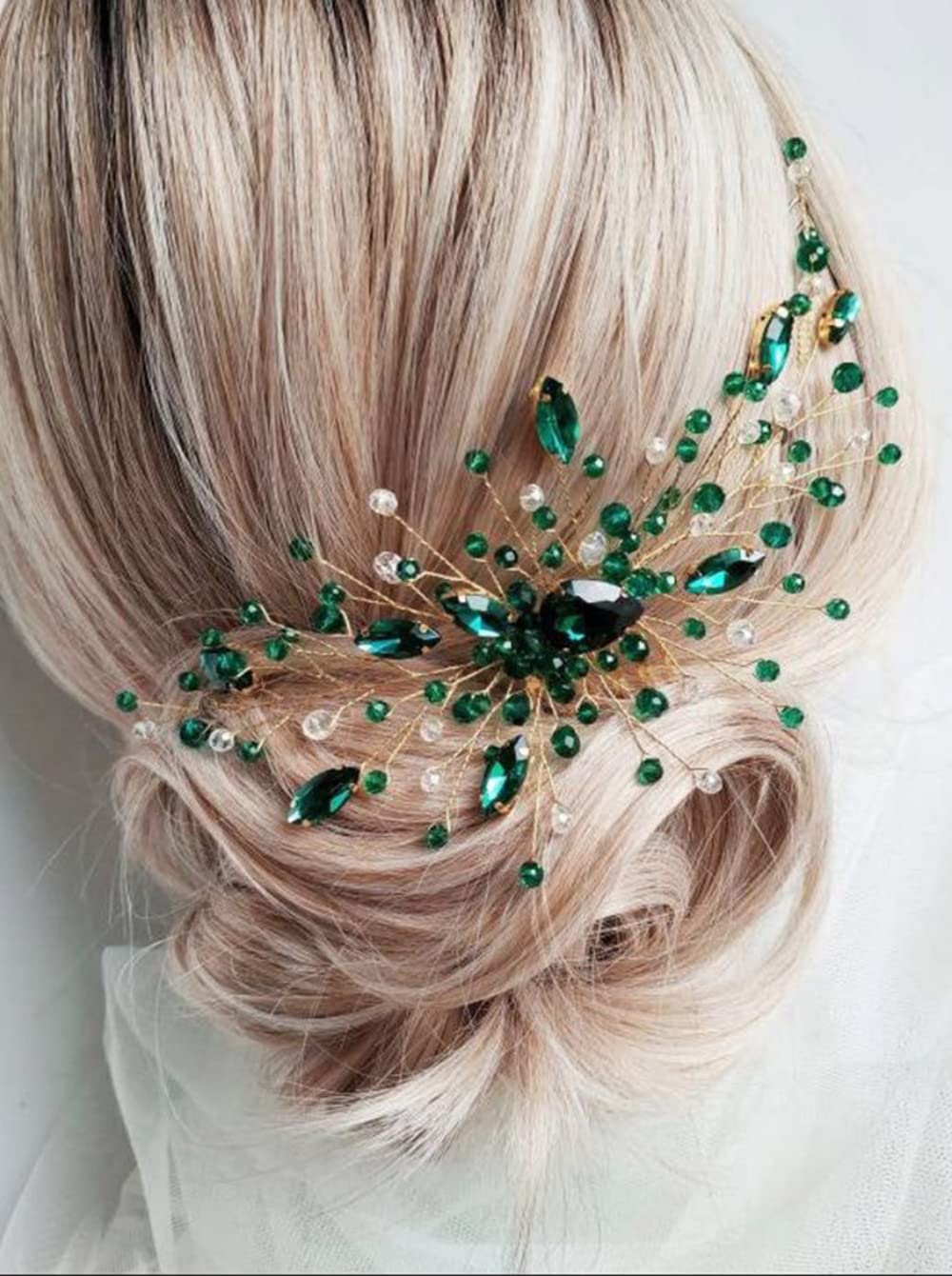 Women Green Rhinestone Crystal Hair comb