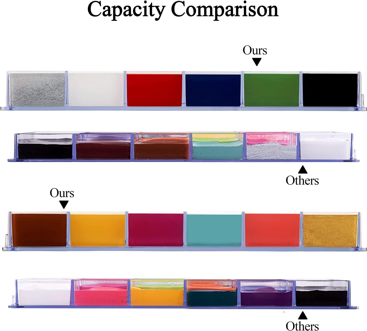 CREAMY OIL BASED FACE PAINTING PALETTE – As with any professional oil-based cream makeup, NOT water-activited painting, it may take sometime to dry(But not exactly dry out completely), we highly recommend to use setting transparent powder to make it dry faster and get longer lasting makeup with no easy transferring after applying. It is easy to apply and blend for creating your desired colors.