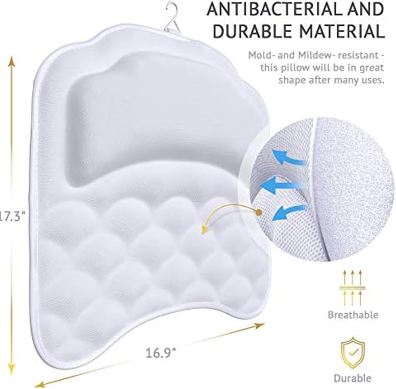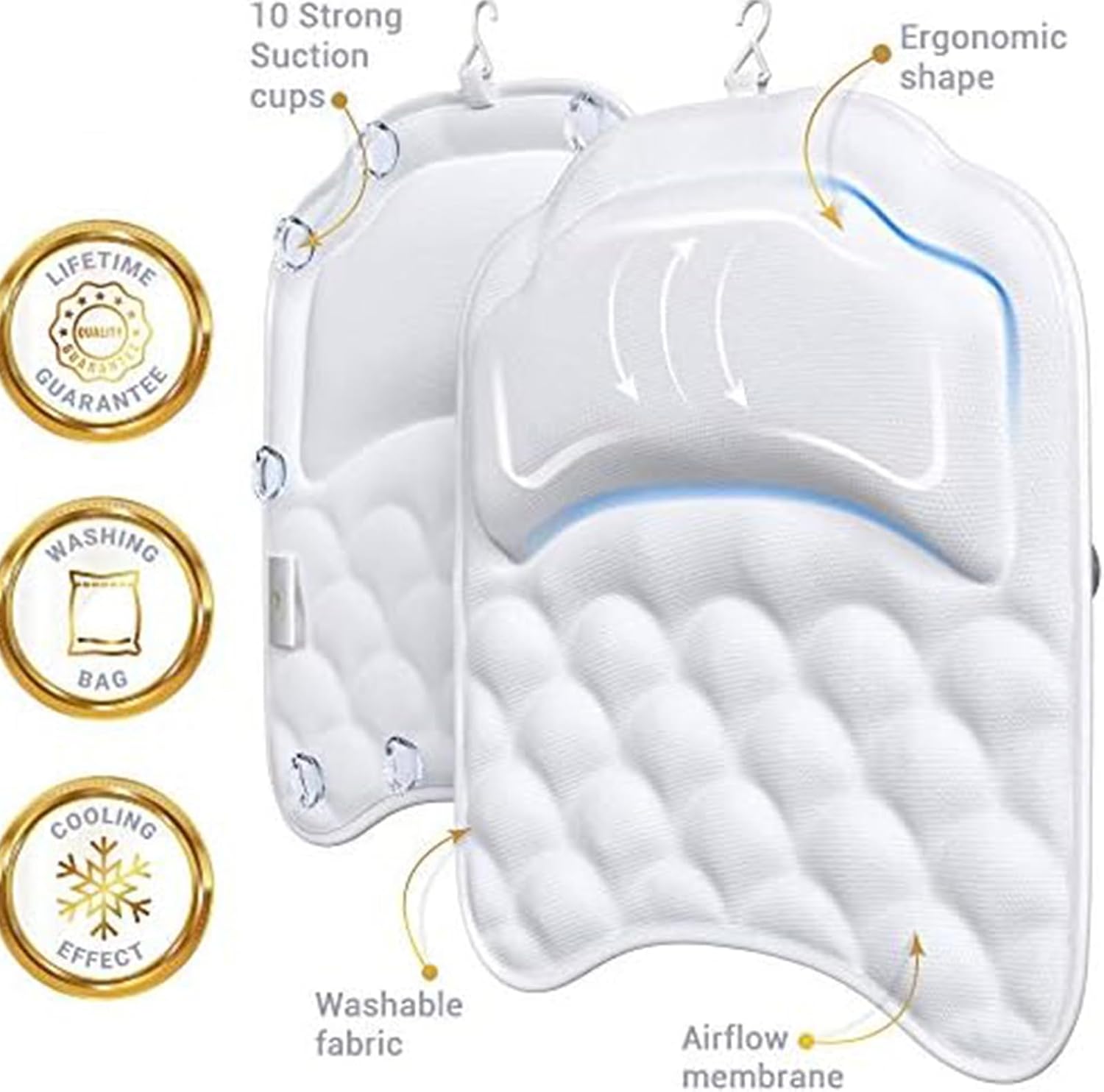 DOUBLE THE GRIP – Unlike most bath pillows for tub that slip now and then, this bath tub pillow has 10 strong suction cups. Hence, our bath pillow for bathtub stays in place, making it even more relaxing. Plus, the large number of cups makes it easy to fix onto various forms of bathtubs