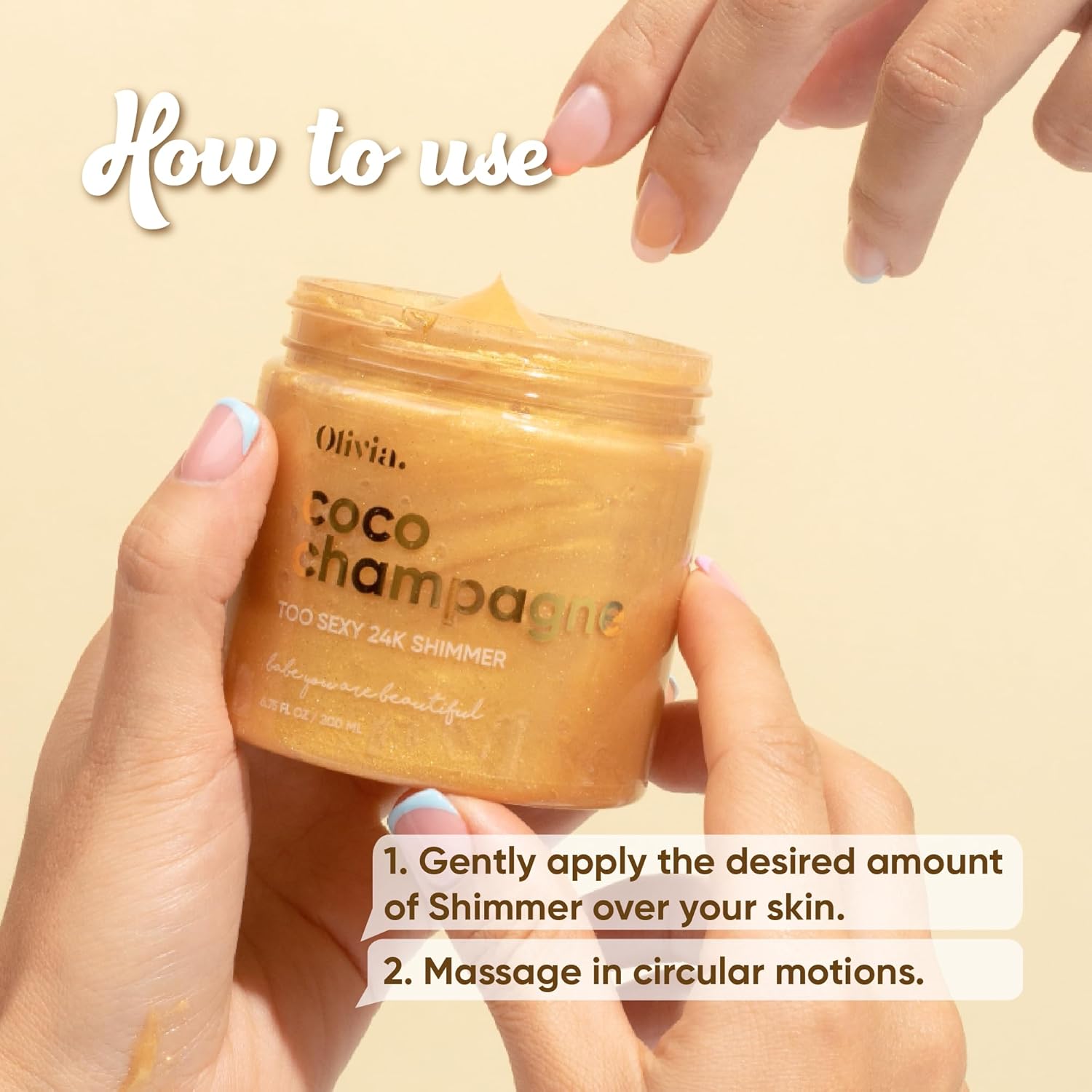 REFRESHING AND NON-GREASY – Our Body Shimmer has a light texture and is very easy to spread on the skin – Not only gives you a hydrated, healthier, nicer and brighter skin but also it will nourish and moisturize giving you a younger look with softer and smoother skin – Glow & Shine with Olivia