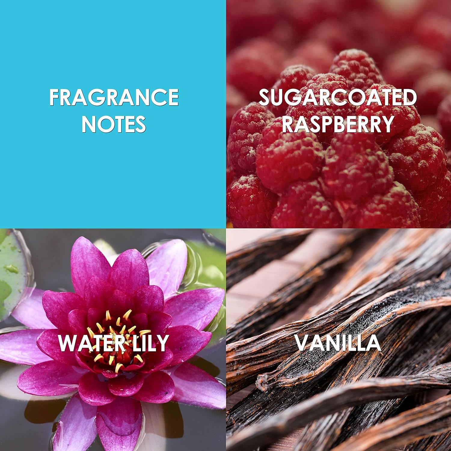 EXHILARATING SCENT This Floral Amber fragrance blends Sugarcoated Raspberry, exotic Waterlily & warm Vanilla, leaving the crowd mesmerized
