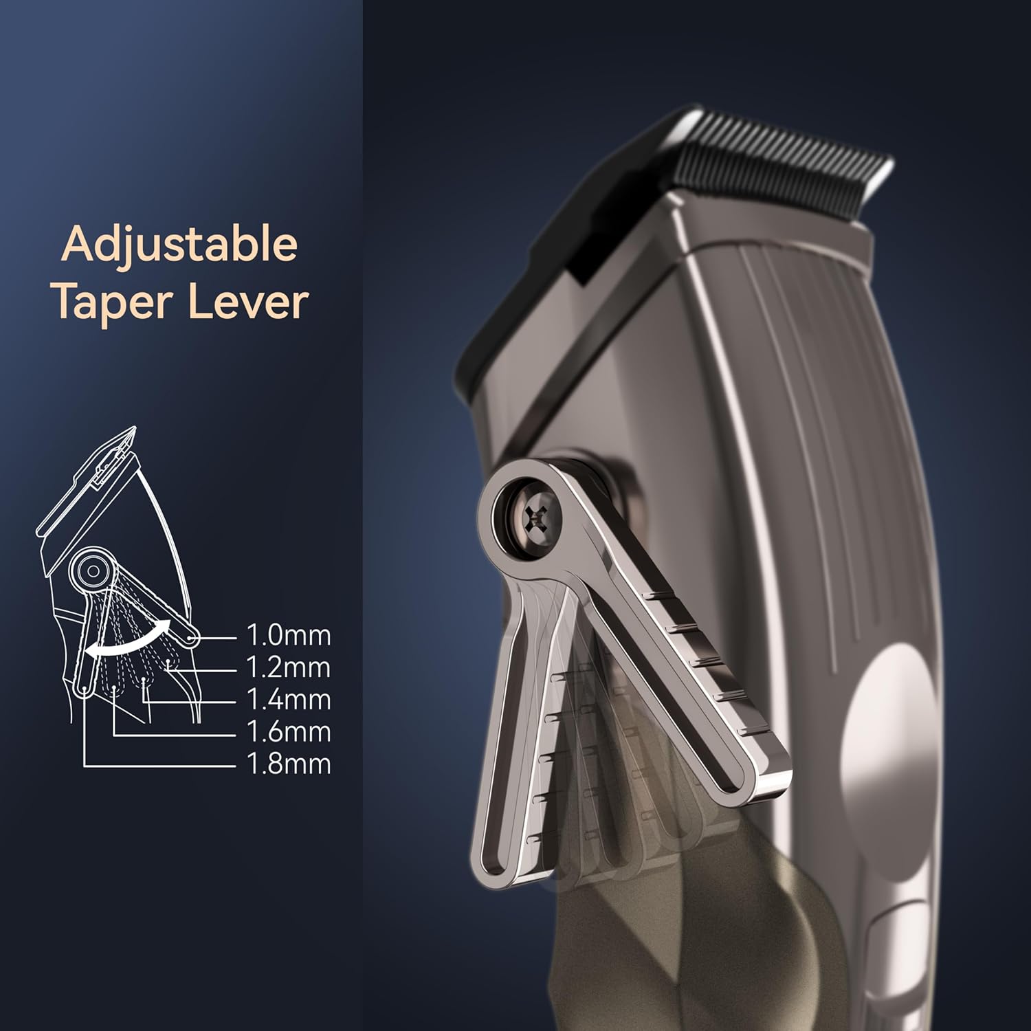【Quiet, Under 60dB】 Equipped with a powerful motor and titanium-ceramic blade that cuts through the hair with minimum noise and vibration, providing quiet, smooth and even cuts.