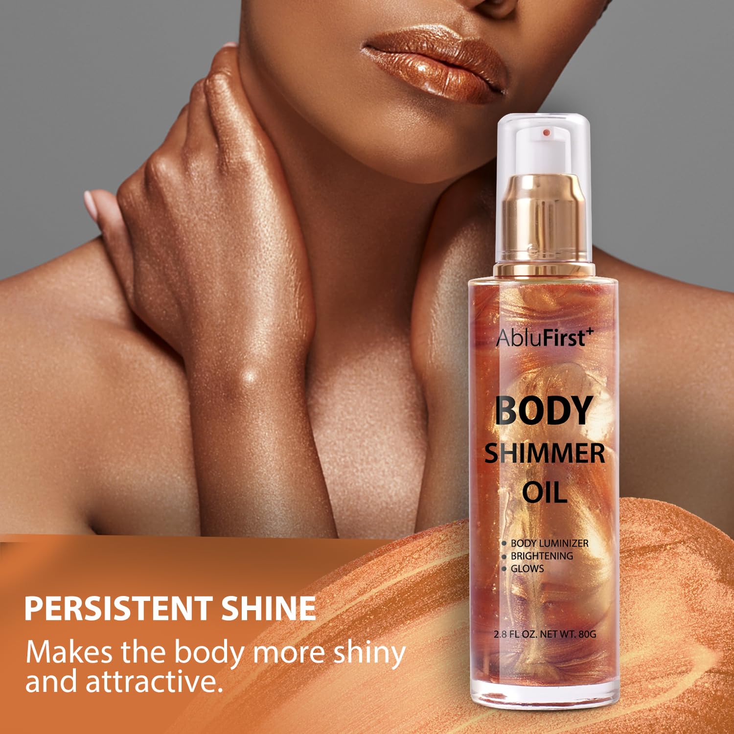Natural Moisturizing ingredients: Made of natural moisturizing formula, refreshing and non-greasy. liquid shimmer body oil is lightweight and provides continuous hydration. It spreads very easily on the skin and does not cake. It keeps skin glowing without clogging pores or settling into fine lines.