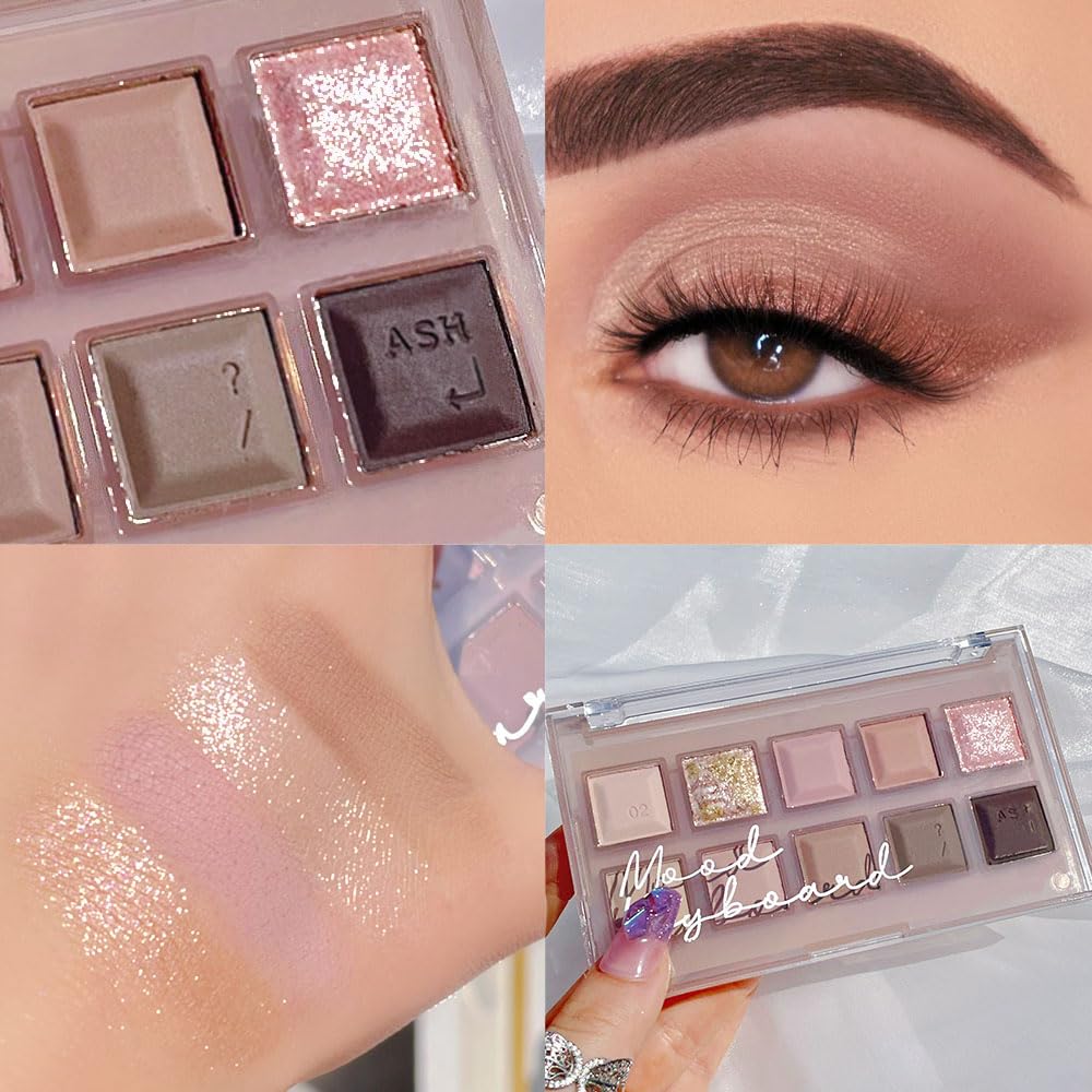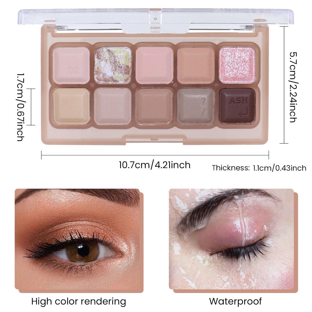 10 Girds Colorful Matte Shimmer Eyeshadow Palette for Eye Makeup,High Pigmented Eye Shadow Primers Powder Palet de sombras de ojos- (BEIGE)