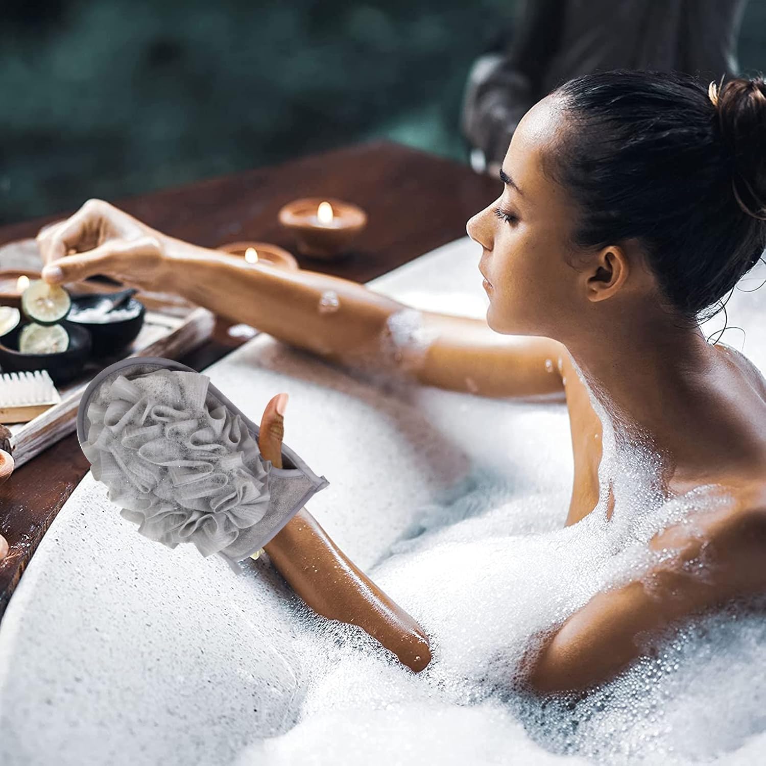 2 in 1 design offers you extremely high cost-effectiveness, because it is equal to a combination of a shower loofah ball and an exfoliating mitt. As a shower loofah ball, it is designed to make every mesh pouf easily and effectively form rich lather with your favorite shower gel or soap. And it also an exfoliation mitt which perfectly meets all your exfoliation needs. It can remove your dead skin and impurities in seconds, thereby, leaving rejuvenated skin in perfect condition for skin care. Once use, you will be rapt in the highly quality bathing.