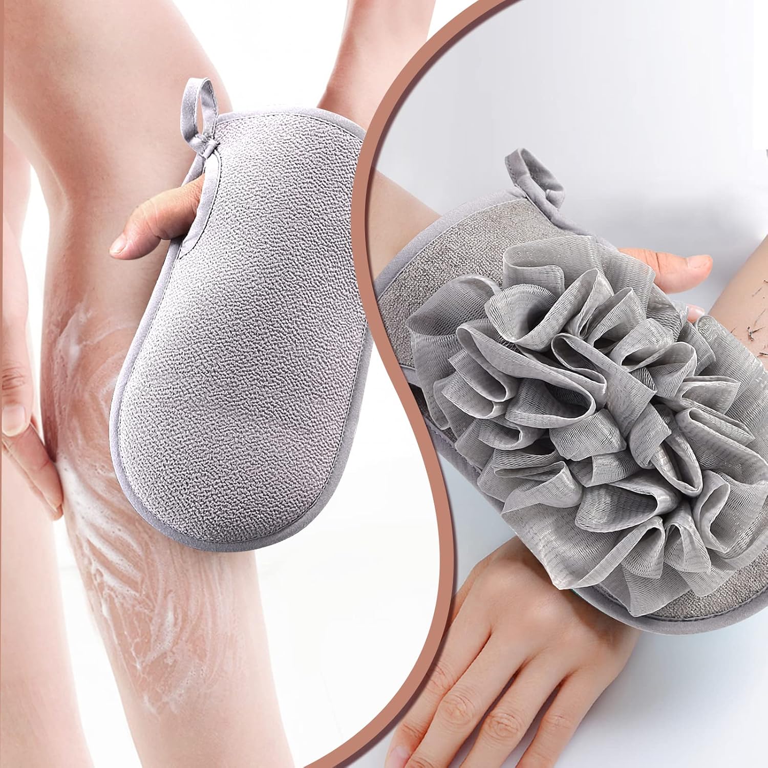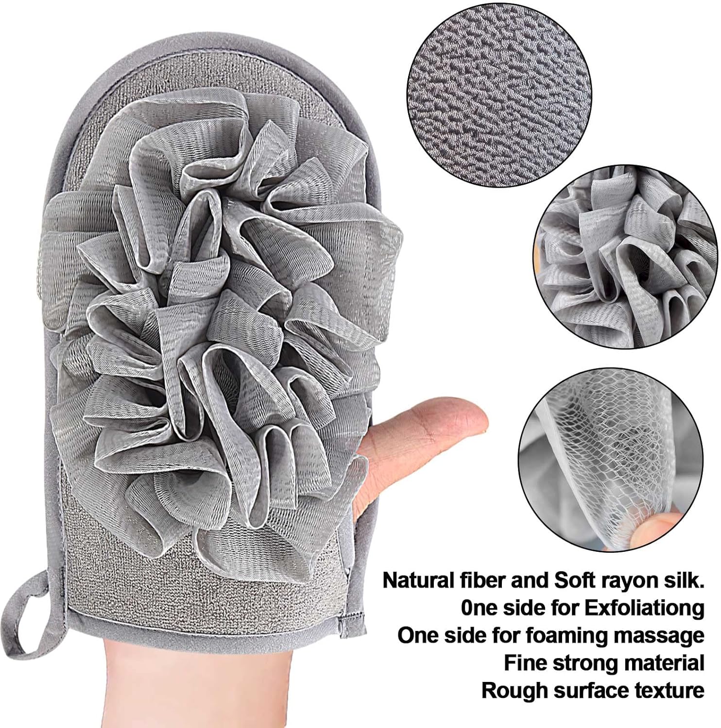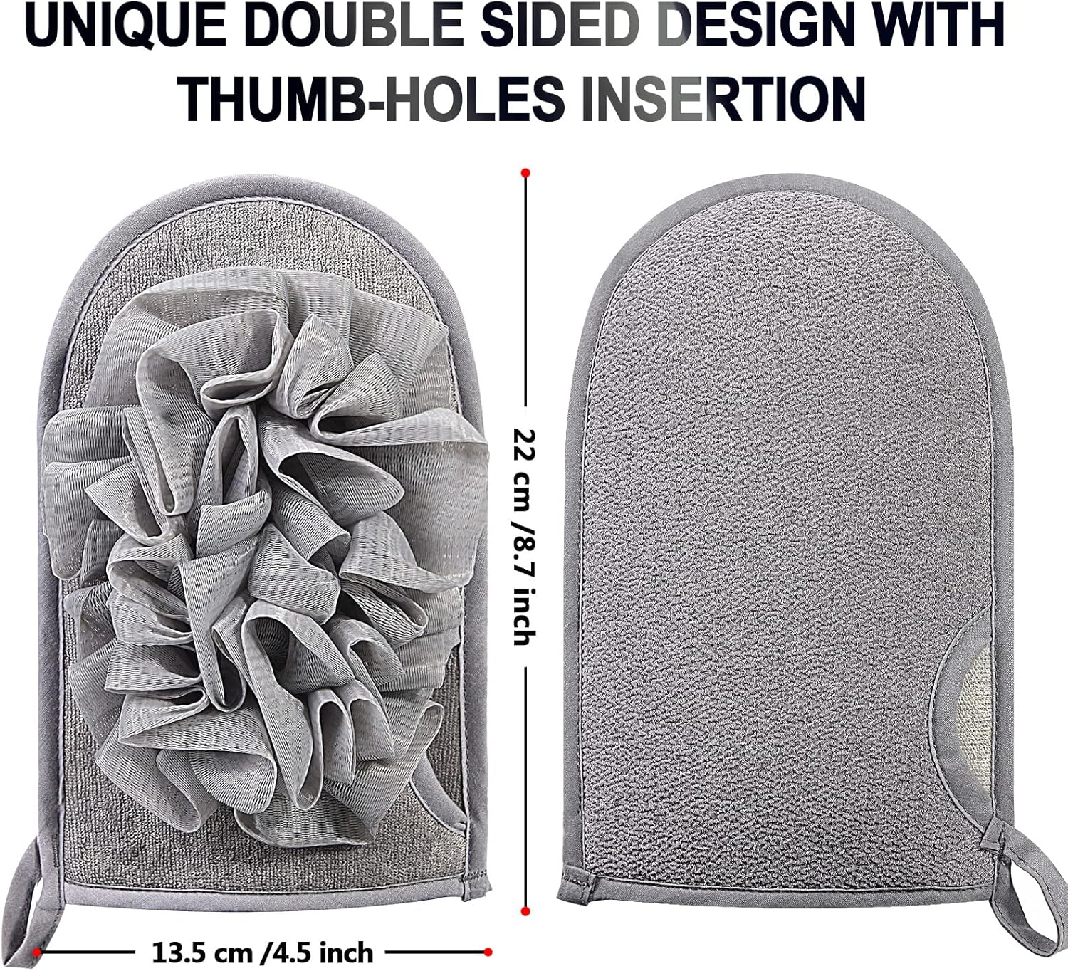 【Bath Sponge-2 Sides USE】 The exfoliating glove is with double-sided design; one side with special exfoliating side for cleaning your body and removing dirt, while the other side with for massaging and deep exfoliation. This allows for a comfortable massage to promote blood circulation, relieve stress, deep clean.