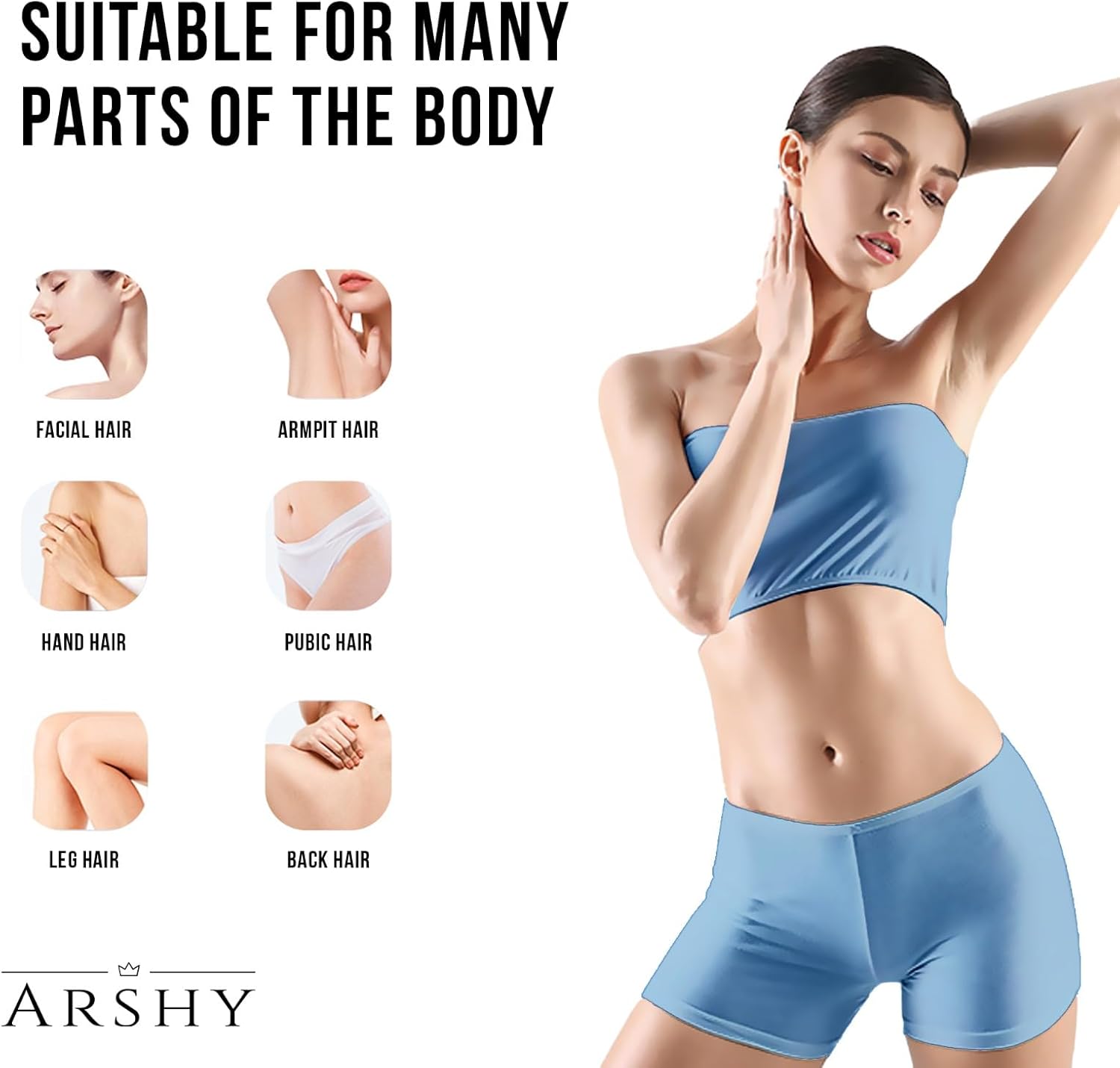 ✅ Premium Hair Eraser: ARSHY’s hair eraser for women and men is a revolutionary tool which is made of premium glass and ABS material with safe, reliable and smooth surface. With its unique magic crystal technology, it gently removes hair without causing any pain or discomfort.