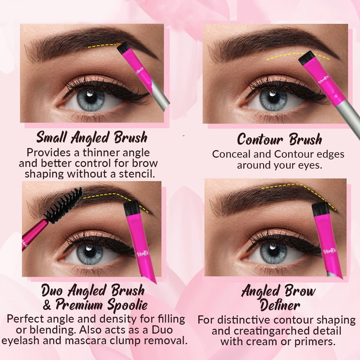 CREATE PERFECT BROW DEFINITION: Precise hair angles making flawless hair-like strokes and unique contours for flawless eyebrows. Hand cut bristles with fine razor designed to apply brow pomade makeup: tinting filler with brow stencils, slanted angle and dense contouring brushes to contour brow edges. These shaping and reshaper brushes have easy to hold handles to easily apply matte, nude or color pigments for flawless arched brows.