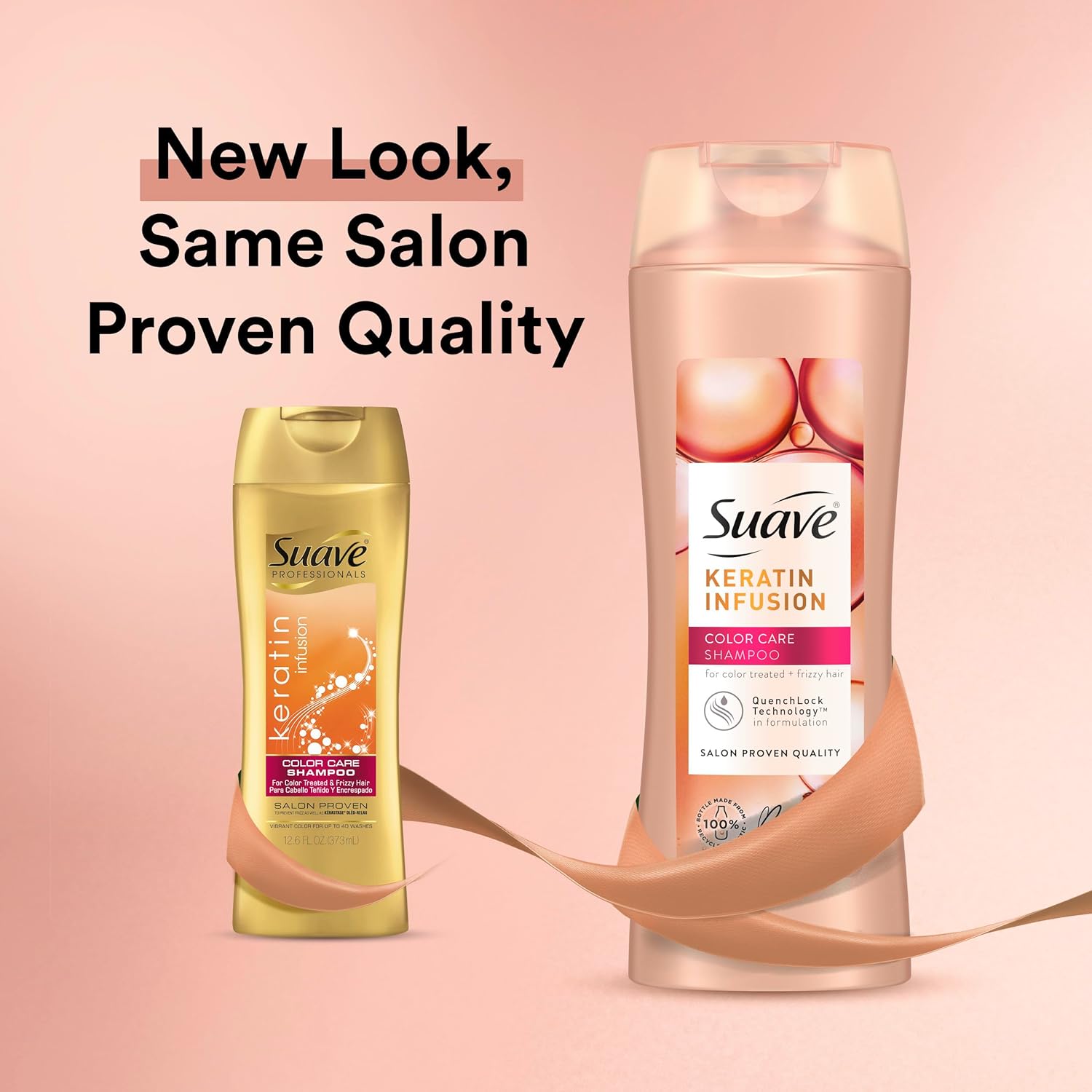 COLOR-SAFE SHAMPOO & CONDITIONER: Suave Keratin Infusion Shampoo and Conditioner for color-treated & frizzy hair nourishes your strands making them feel strong, soft, and shiny again.
