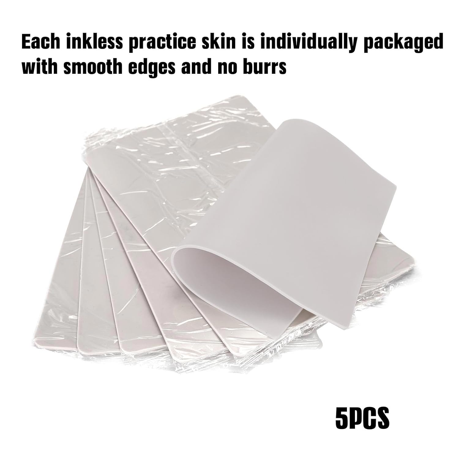 Packaging and Size:The size of this inkless practice skin is 11.8 * 7.8 inches, with a thickness of 3 millimeters. Each practice skin is individually packaged, with a total of 5 sheets, suitable for tattoo beginners and artists.