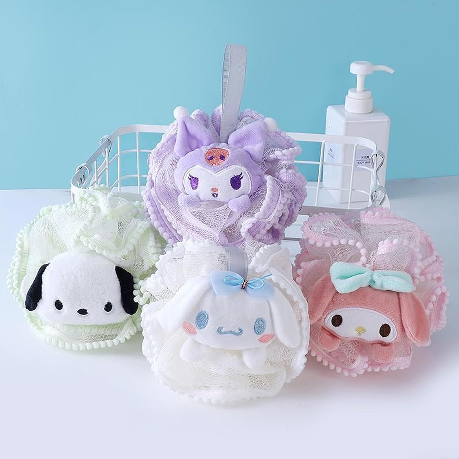【Kawaii Bath Loofahs】: The soft bath ball sponge meshes with plush cartoon doll,looks very cute and sweet, multiple colors and styles are catering to kids,girls and womens preference.Make you enjoy taking showers.