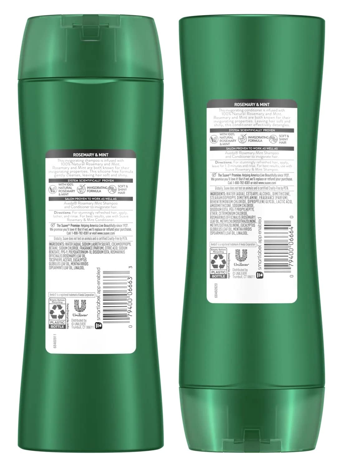 Suave Shampoo and Conditioner Set, Rosemary & Mint – Invigorating Rosemary Mint Clarifying Shampoo & Conditioner, Hair Strengthening, Scented, 12.6 Oz Ea (2 Piece Set)