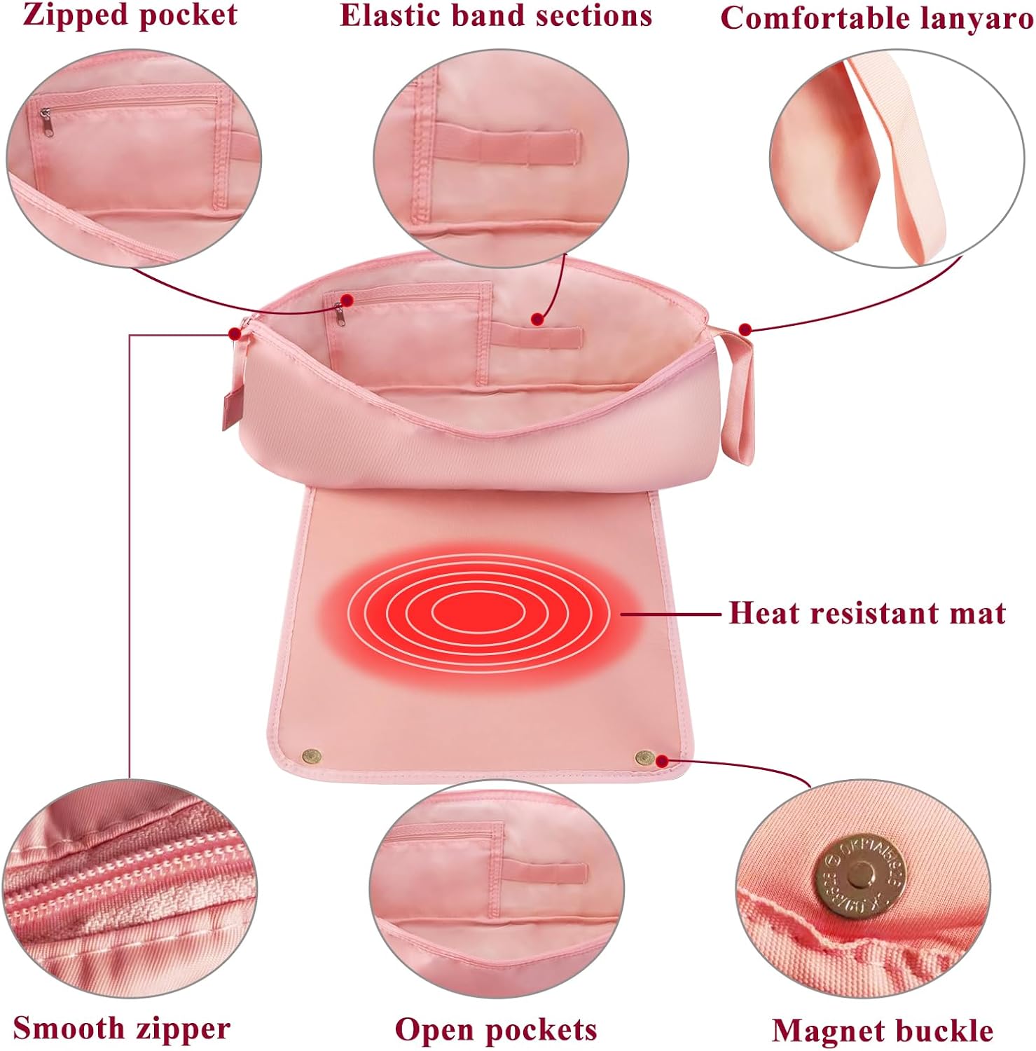 Efficient Interior Storage: Stay organized with two interior pockets and two elastic band sections. Keep your hairstyling essentials, like hair clips and accessories, neatly stored and readily accessible, whether you’re at home or on the go.