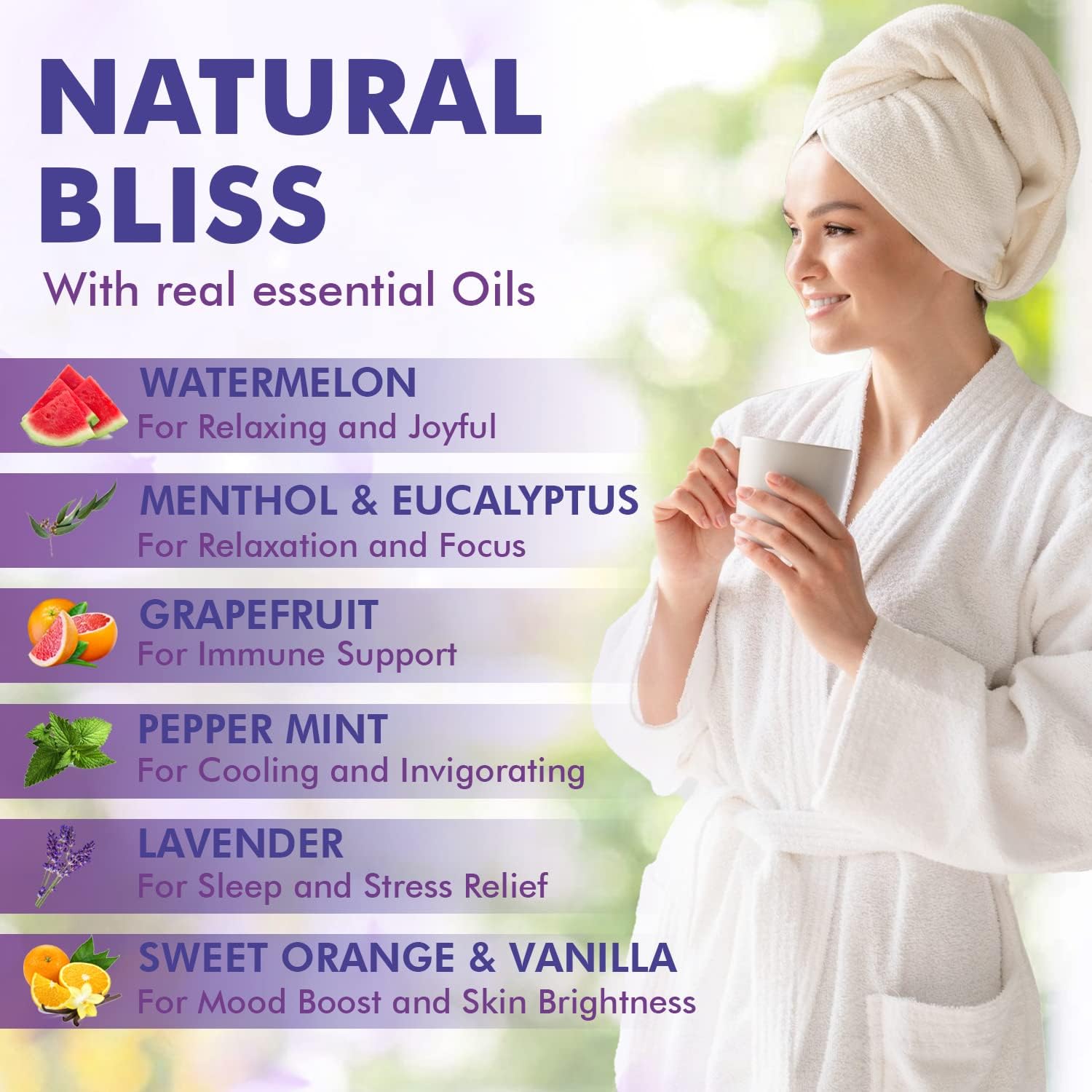 12 Shower Steamers; our aromatherapy shower melts, which will dissolve in your bathtub and release potent aromatherapy essential oils that will help you immerse in deep relaxation. It comes with Grapefruit, Lavender, sweet orange & vanilla, peppermint, eucalyptus and watermelon scents.