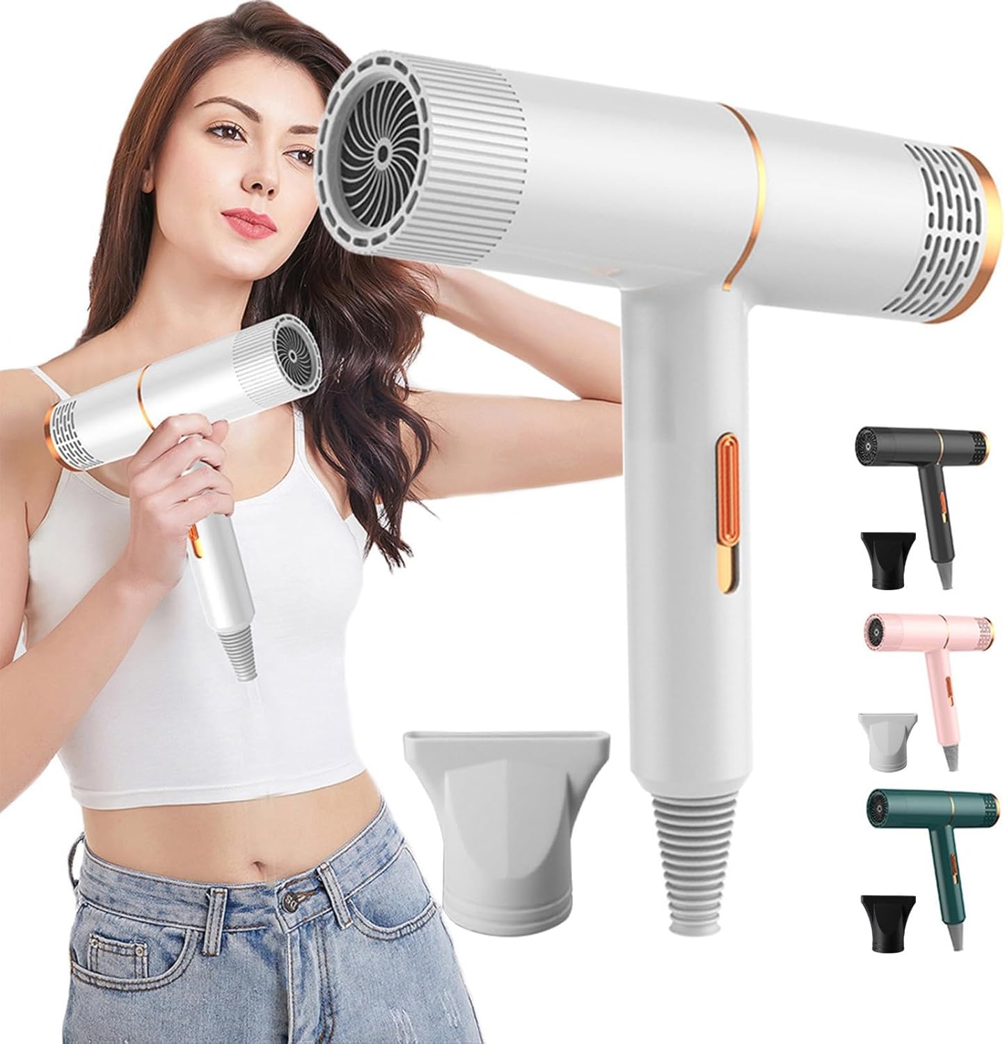 【High Motor】Turbo-Covered Design, Simulated Injection Aircraft Engine Technology, Three Wind Speeds, Strong Airflow Multiplier. Direct Current Speed Is Fast, Low Noise Motor, Long Service Life.Fast Blow Dry Hair, Long-Lasting Styling.